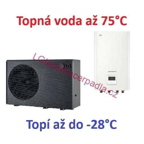 Monblokové tepelné čerpadlo vzduch-voda LG Therma V Split R290 7 kW 3f 400V sestávající se z venkovní jednotky HM073HF.UB40 a vnitřní jednotky HN1639HC.NK0 (včetně 9kw elektrokotle).